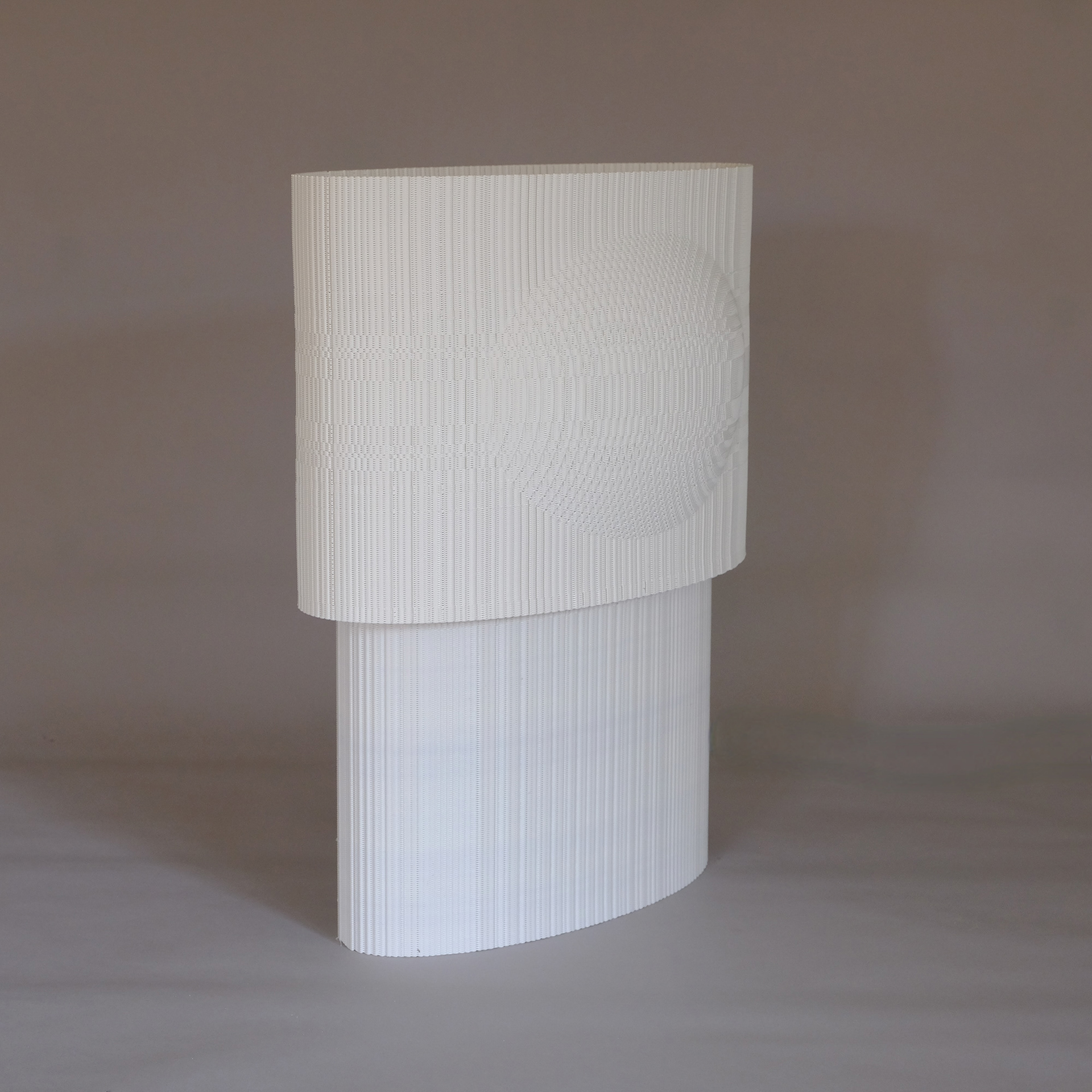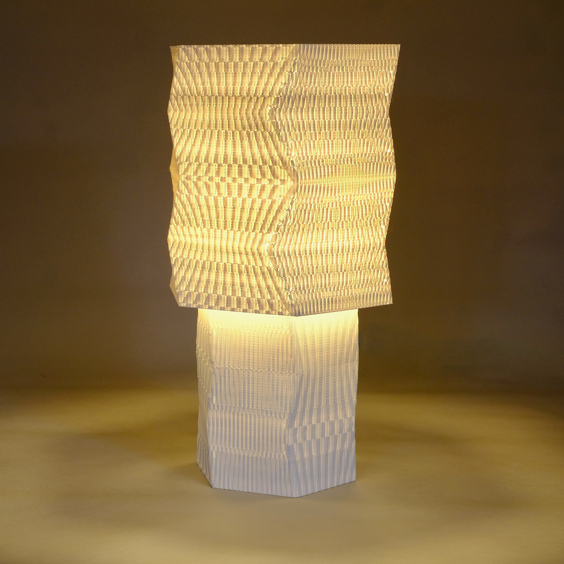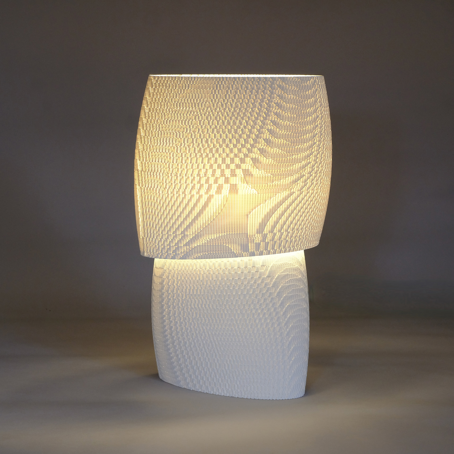 These table lamps are printed white. Other colours on request available. The height of these lamps is approximately 50 cm.